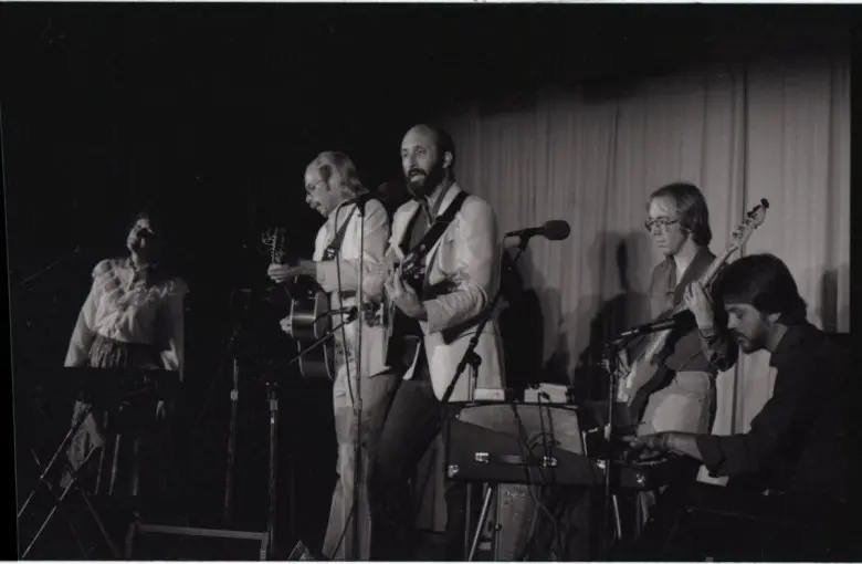 پیتر، پل و مری در سال ۱۹۸۵ در مرکز شهر کِمبرلند کنتی برای گرامیداشت ۲۵ سالگی تشکیل گروه اجرا کردند. تصویر: فایل BDN