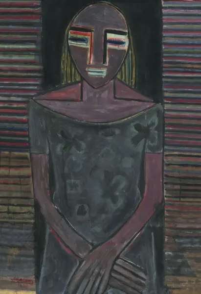 ویفردو لام. Femme violette (زن در بنفش). ۱۹۳۸. گواش بر روی کاغذ بر روی پنل