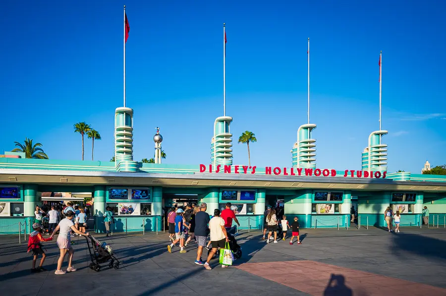 من در این صبح خاص، ساعت ۷:۵۰ صبح به هالیوود استودیوز دیزنی رسیدم که حدود ۴۵ دقیقه دیرتر از برخی بازدیدکنندگان بود. (پارکینگ معمولاً ساعت ۷ صبح باز میشود و بازرسی امنیتی حدود ۷:۱۵ تا ۷:۳۰ صبح شروع میشود.) این زمانبندی خیلی خوب جواب داد، چون من همچنان از جمعیت جلو زدم و به سرعت از بازرسی کیفها عبور کردم.